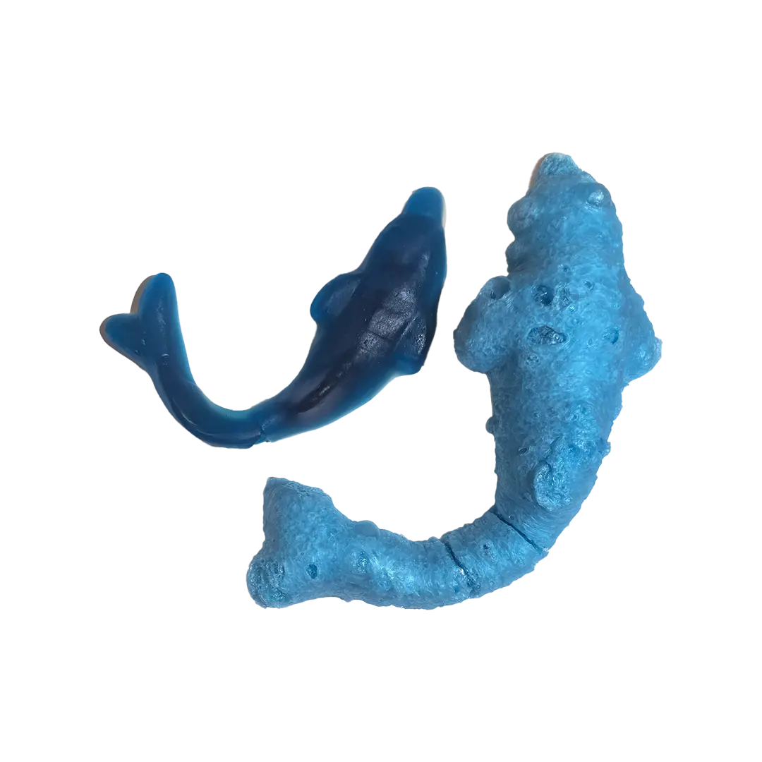 O Glitchphin XXL é um golfinho de goma gigante que passou por um colapso temporal de liofilização. O resultado? Uma freeze dry candy mutante, crocante, surreal e absolutamente fora do normal.