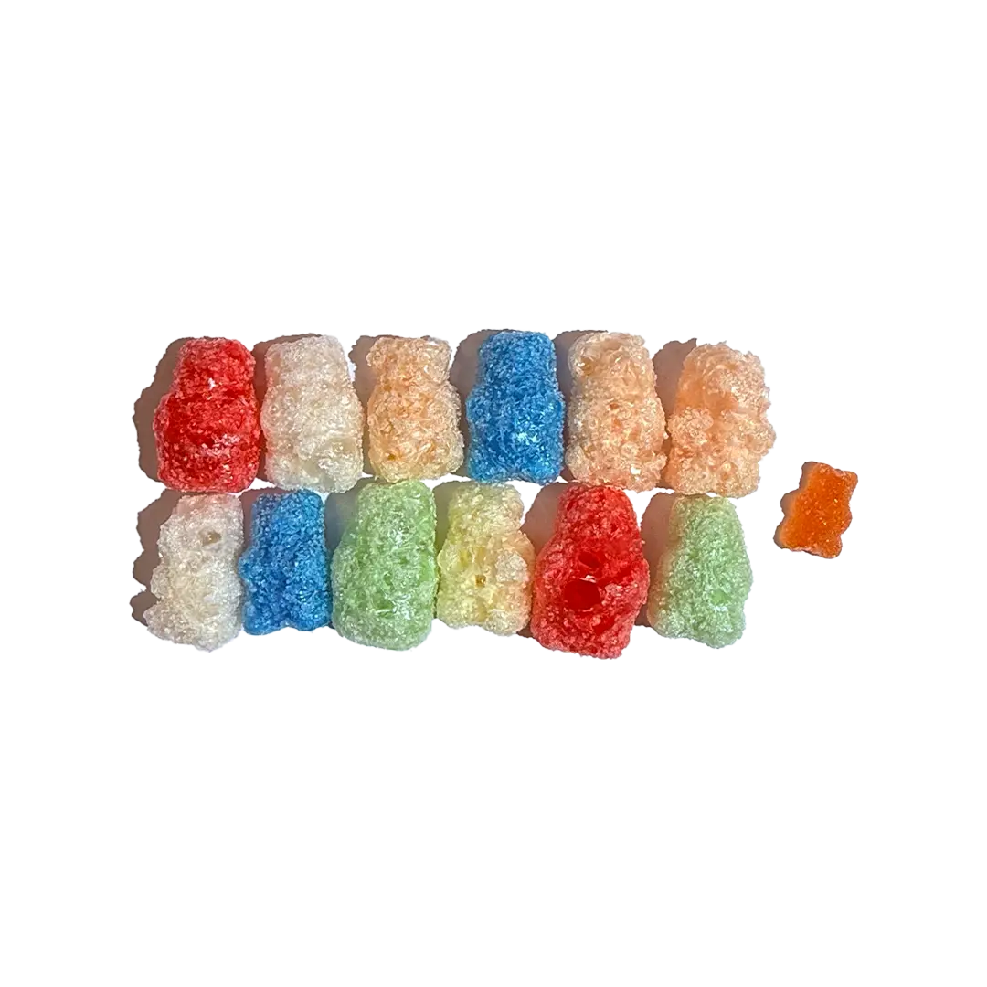 Os ShinyBearz são ursinhos de goma clássicos que passaram pela câmara de liofilização para se tornarem freeze dry candy: crocantes, leves, doces e com um brilho visual que salta à vista.